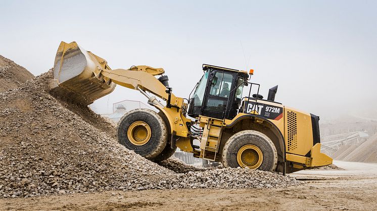 Caterpillars hjullastare 972M XE och 980M är två vanliga modeller som används för matning och frambärning vid krossar och som ligger i framkant när det gäller bränsleeffektivitet och prestanda.