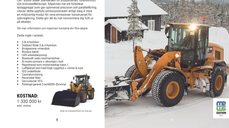 ME-Edition är ett unikt samarbetsavtal mellan Pon Equipment och Maskinentreprenörerna. Som medlem i Maskinentreprenörerna har du möjlighet att köpa 6 utvalda maskiner med utrustning till specialpris (se i broschyr). Dessutom får du förlängd garanti och rabatt på serviceavtalet.