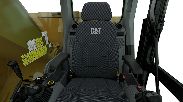 Nya Cat 325 är som övriga maskiner utrustad med ett komfortabelt, väldämpat förarsäte som har både värme och kyla.