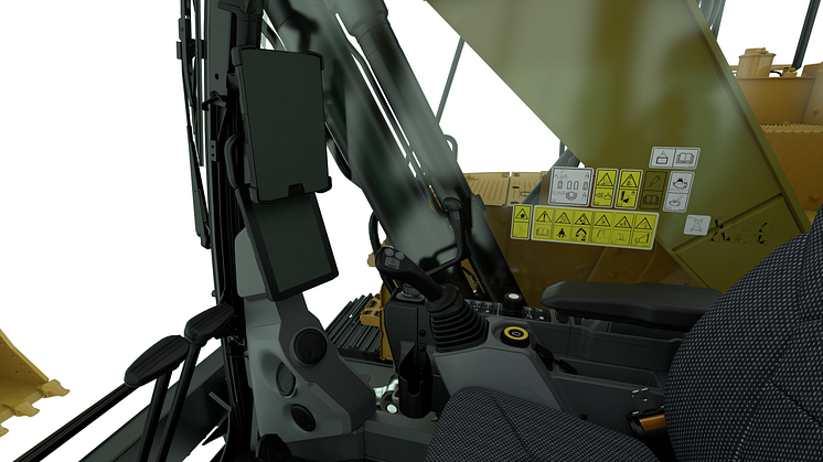En annan förbättring jämfört med Cat 325F är förarmiljön. Premium-hytten är standard för den svenska marknaden.