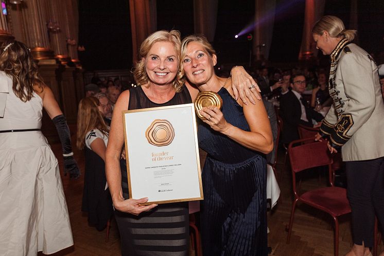 Zilenzios grundare och ägare Marie Lindqvist Pahlstad och Jenny Helldén efter att de utsetts till "Founder of the Year".