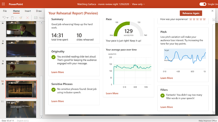 Presenter Coach is only as good as its data, and it is obviously still a rather new product, being released only in June 2019. It could become something more immersive and different in the future. But right now, it's not really that useful.