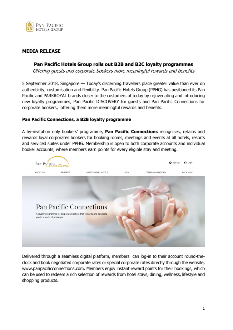 Pan Pacific Hotels Group rolls out B2B and B2C loyalty programmes
