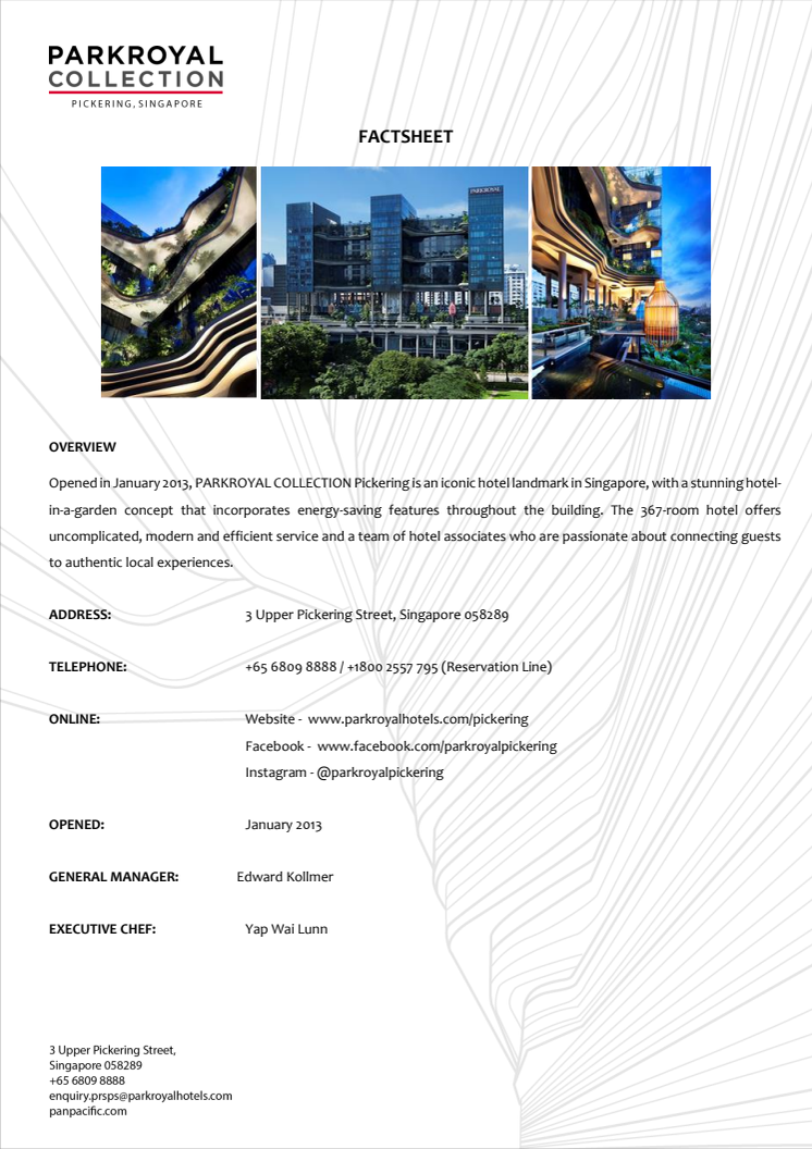 PARKROYAL COLLECTION Pickering factsheet