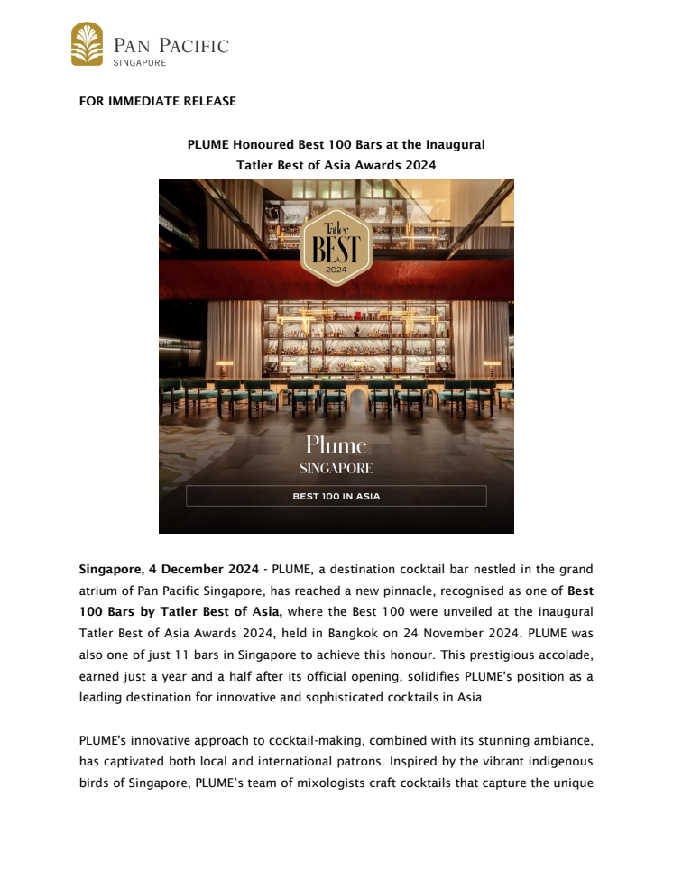 Press Release_PLUME Honoured Best 100 Bars at the Inaugural Tatler Best of Asia Awards 2024 _041224_Final.pdf