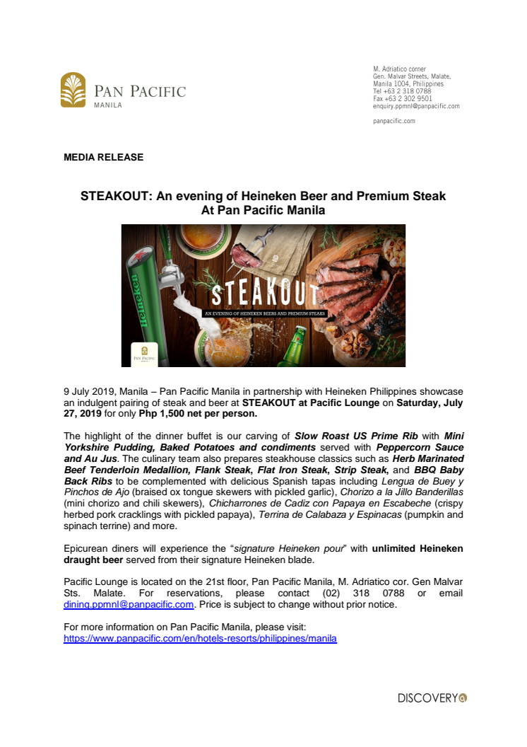 STEAKOUT: An evening of Heineken Beer and Premium Steak at Pan Pacific Manila