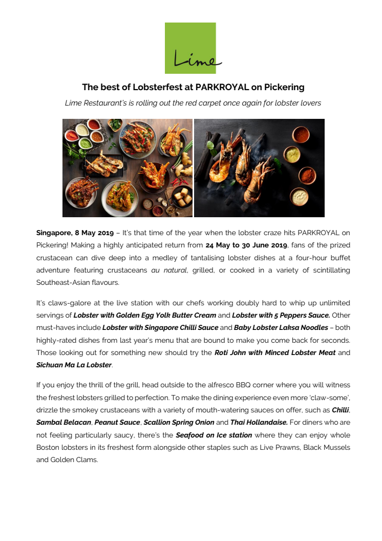 The best of Lobsterfest at PARKROYAL on Pickering