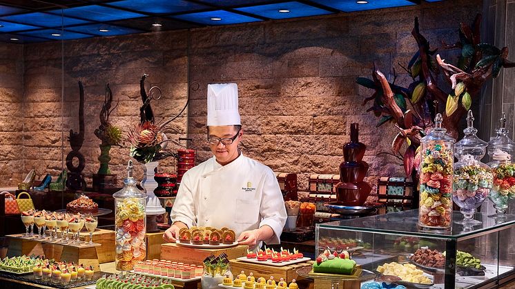 Be taken on a journey from the East to the West featuring inspiring creations from seven live food stations including Stock Poached Kampong Chicken with Spring Onion Ginger Sauce, Pan Seared Seabass with Enoki Mushrooms, Sautéed Haricots Verts and Daikon Soy, and Slow Braised Short Ribs with Potatoes, Beans and Pearl Barley.