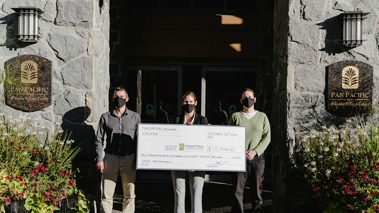 October 8, 2020 (Vancouver, BC): As people and businesses around the world face an uncertain economic future caused by Covid-19, charities like Canuck Place Children’s Hospice have experienced a devastating loss of funding – but Pan Pacific Whistler is stepping in to help. Despite a similarly challenging year, the hotel has gifted $10,548.69 to Canuck Place – a fitting tribute, as 2020 marks Pan Pacific Whistler’s 10th anniversary as a charity partner, with more than $110,000 donated over the past decade.