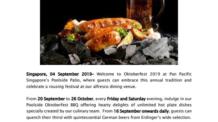 Singapore, 04 September 2019– Welcome to Oktoberfest 2019 at Pan Pacific Singapore’s Poolside Patio, where guests can embrace this annual tradition and celebrate a rousing festival at our alfresco dining venue.