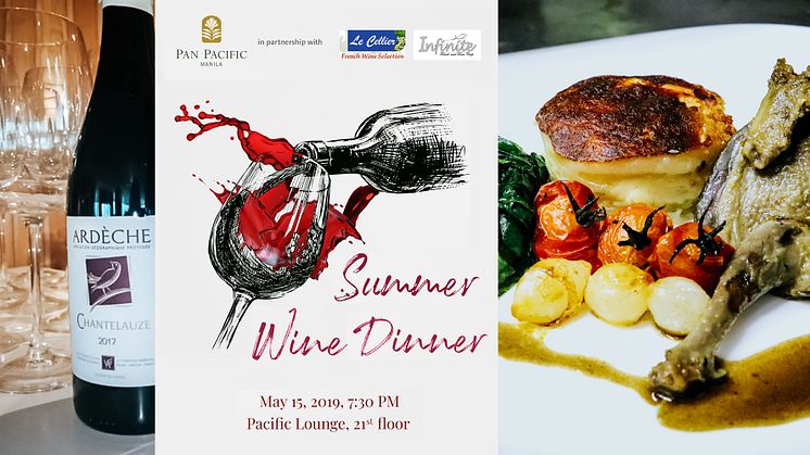 21 May 2019, Manila– Pan Pacific Manila brought back the artistic flair in dining with a special wine and food pairing experience “Summer Wine Dinner” in partnership with Le Cellier French Wine Selection and Infinite Travel and Tours at their panoramic rooftop restaurant, Pacific Lounge last May 15, 2019 at 7:30 PM onwards. Guests were treated to a gastronomic world of aromas and flavors for only Php 3,500 net per person.