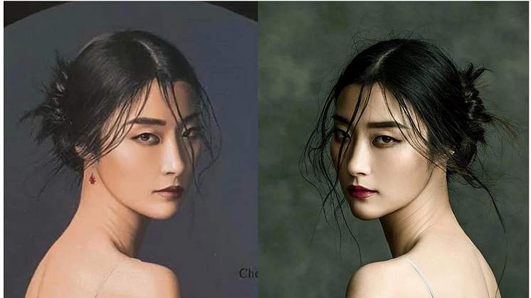 Zhang's original shot was taken for a Harper's Bazaar Vietnam cover shoot in 2017. Despite slight variations, the photo and painting share remarkable parallels.