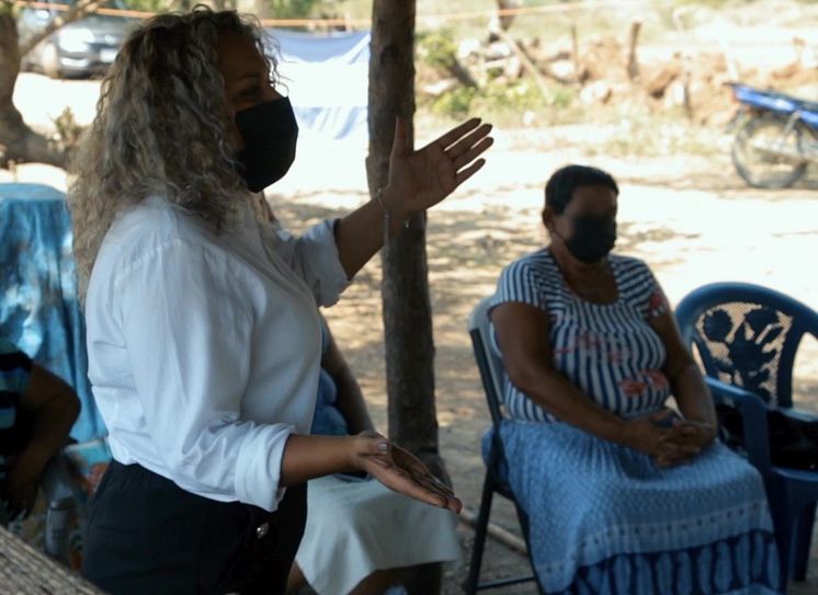 Denia Castillo from RADDH, to the left in the picture, says that when heavy machinery and technical equipment started to arrive, the communities began a peaceful protest, putting up tents outside the private area. The project was stalled and was moved to another community. But there too, the project faced resistance, and a camp was put up. The community members, mostly women stayed there for months, until private security removed the camp.