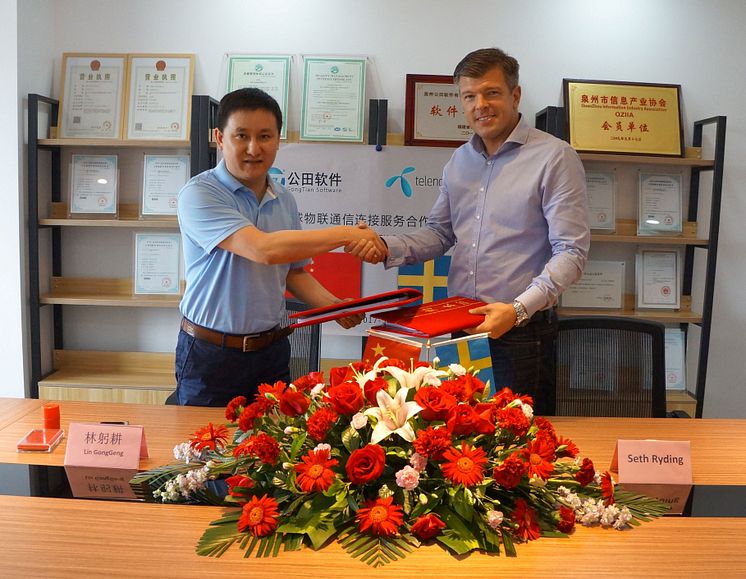 Mr. Lin Gonggeng, CEO, GongTian together with Seth Ryding, Head of Region Asia-Pacific, Telenor Connexion.