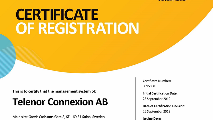 Telenor Connexion is the specialized IoT company within the Telenor Group, one of the world’s major mobile operators. Building more than 20 years of experience, Telenor Connexion provides global IoT connectivity and cloud services to enterprises with large fleets of connected devices as well as third-party service providers.