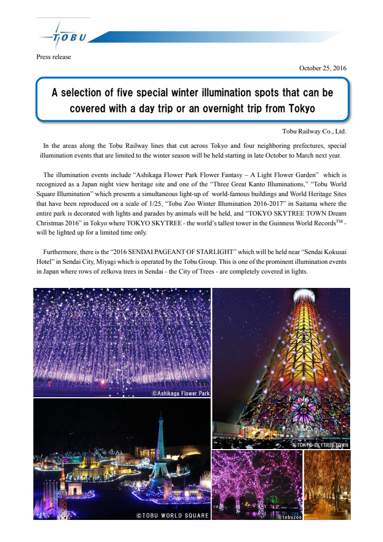 A selection of five special winter illumination spots that can be covered with a day trip or an overnight trip from Tokyo