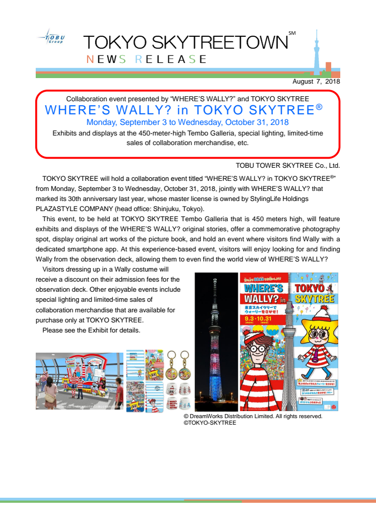 Collaboration event presented by “WHERE’S WALLY?” and TOKYO SKYTREE WHERE’ S WALLY? in TOKYO SKYTREE®