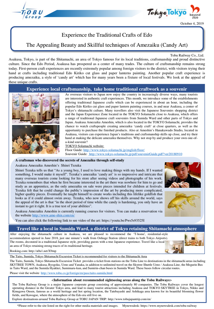 [English]Experience the Traditional Crafts of Edo The Appealing Beauty and Skillful techniques of Amezaiku(Candy Art)