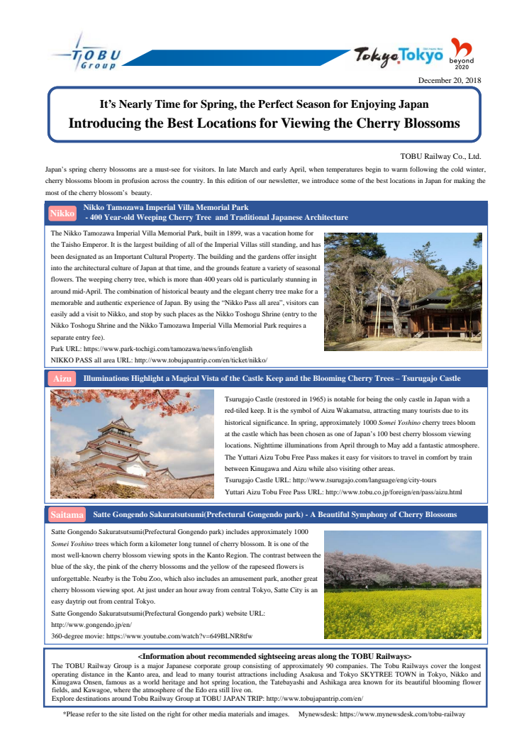 It’s Nearly Time for Spring, the Perfect Season for Enjoying Japan. Introducing the Best Locations for Viewing the Cherry Blossoms.