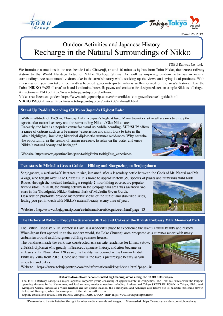 Outdoor Activities and Japanese History. Recharge in the Natural Surroundings of Nikko.