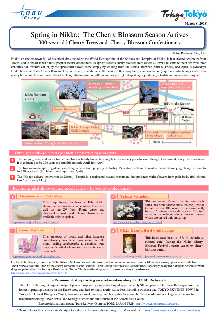 Spring in Nikko: The Cherry Blossom Season Arrives 300-year-old Cherry Trees and Cherry Blossom Confectionary