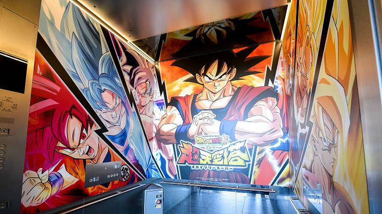 The 450-meter-high Tembo Galleria is used to resemble the Tenku Training Galleria with a special corner where visitors can enjoy the killer techniques from the previous Dragon Ball series. Visitors will enjoy Dragon Ball training in the corner, while at the 451.2-meter highest point or Sorakara Point, the image decoration system using AR technology makes it possible for them to virtually try on the Gokou's costume and hairstyle in time with their gestures, allowing them to feel as if they are fighting against the fiercest enemy, Broly. Other various entertainment contents will also be offered, such as a TOKYO SKYTREE original photo spot where visitors can take a commemorative photo with the animation's characters.