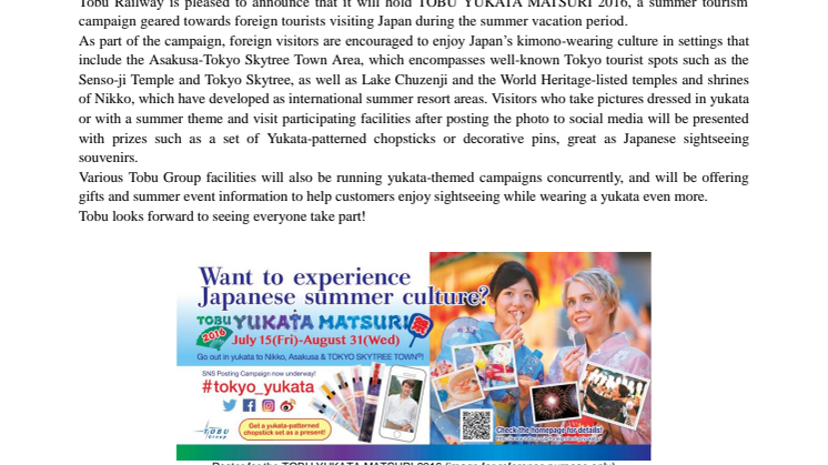 • Poster for the TOBU YUKATA MATSURI 2016 (image for reference purpose only)