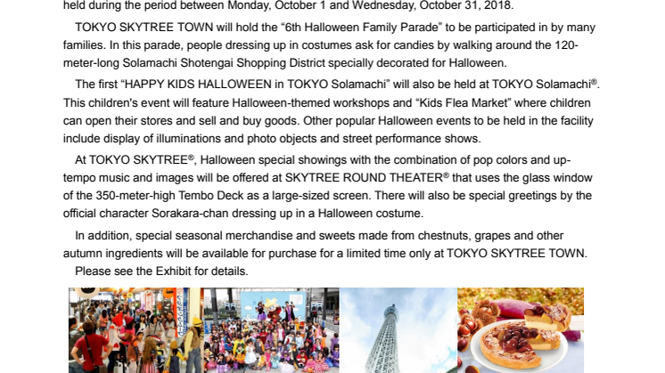 • Costume family parade and the first Halloween kids events will be held. HALLOWEEN EVENTS at TOKYO SKYTREE TOWN (R)
