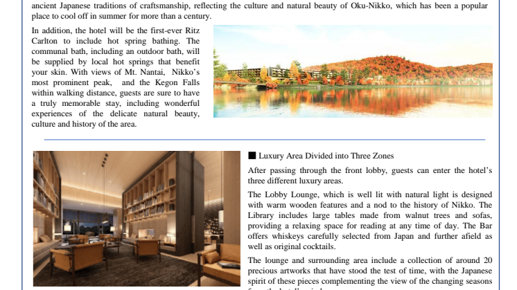 • Luxury Resorts in Nikko Prepares to Open Ahead of the Early Summer Travel Season