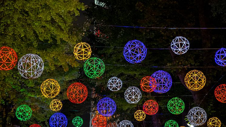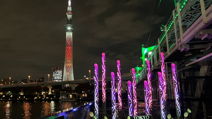 • Colorfully Lit Bamboo Temari Balls & TOKYO SKYTREE