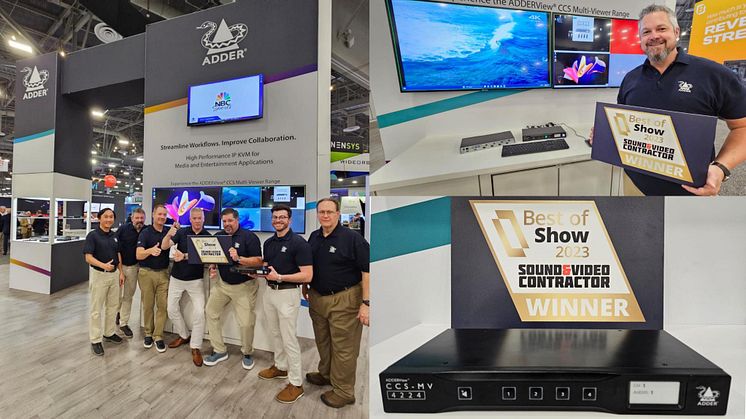 The doors may have closed on NABShow 2023, but we are celebrating the news that the ADDERView® CCS-MV 4224 won its first industry award. Presented at the show, our latest desktop KVM multi-viewer switch was presented with SVC's Best of Show Award. This prestigious annual awards program recognizes outstanding new products and solutions in the media and entertainment industry.