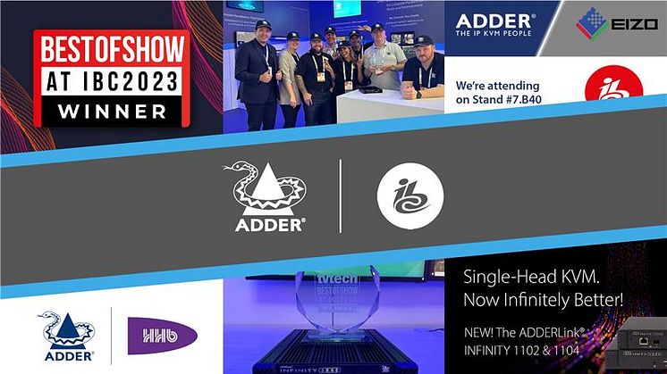 The "Best of Show IBC 2023" award, which honors goods that raise industry standards and open the door to a better, more productive future, was won by the ADDERLink® INFINITY 3000 (ALIF3000). Recent updates to the series, which include support for new VDI protocols, UHD support, digital display port audio and enhanced USB support, demonstrate Adder's commitment to excellence and innovation in the connectivity solutions market.