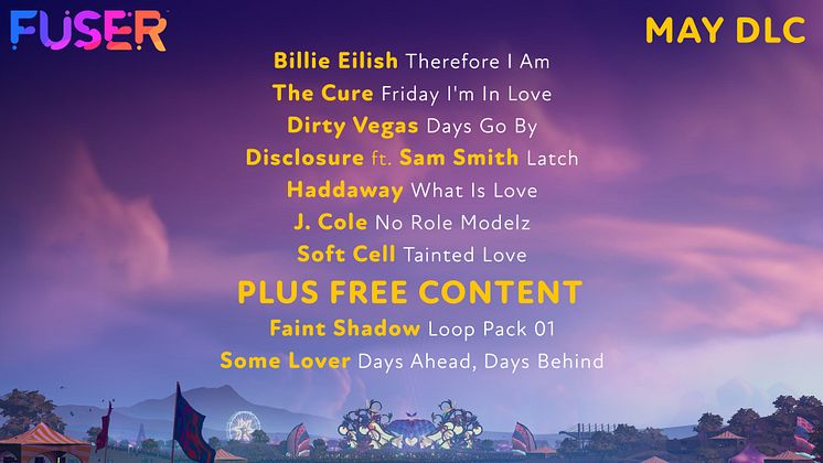London, UK – May 4, 2021 – The month of May is bringing another group of iconic artists as downloadable content for FUSER. Enhance FUSER mixes with the jangle pop rock of “Friday I’m in Love” by The Cure, the Eurodance stylings of “What Is Love” by Haddaway, and the 80s synth sound of “Tainted Love” by Soft Cell. All these tracks will be available as DLC in May.