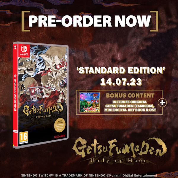 Konami Digital Entertainment B.V. today announced they are creating special physical editions of GetsuFumaDen: Undying Moon on Nintendo Switch™, launching on July 14th. The previously digital exclusive title will be available in 2 different editions that both comprise of an artbook, soundtrack and the original 1987 Famicon Gestufumaden game!