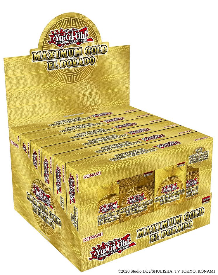 Each Maximum Gold: El Dorado box will include 4 packs with 7 cards each: 2 Premium Gold Rares and 5 gold-letter Rares. Maximum Gold: El Dorado is available now, priced £29.99/€29.99
