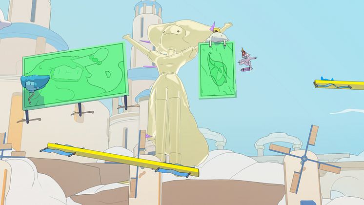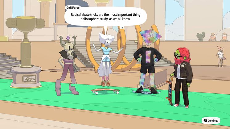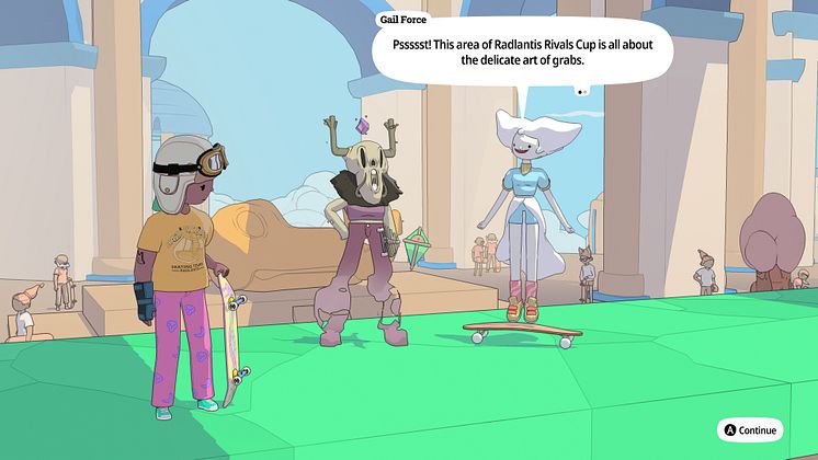 Join the fearless Radmospheric Three – Squid, Licht, and Professor Planks – unified to prevent B.B. Hopper, the business frog, from exploiting the rumoured hidden city in the sky. As you traverse these incredible heights, collect map pieces that unlock the path to Radlantis, the legendary lost island built by the skate gods themselves. The tempest skate god Gail Force provides new Windzones to ride and perform the gnarliest aerial tricks. Get ready to embark on the raddest quest in OlliOlli World’s final ascending adventure: Finding the Flowzone!
