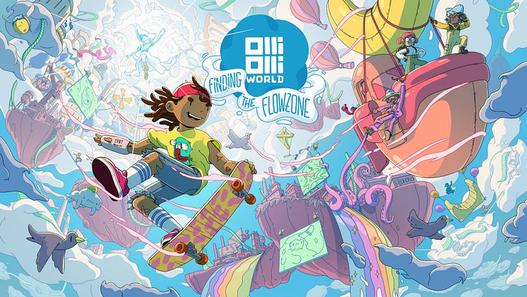 “When we set out to create this expansion, we knew we wanted to take players on another remarkable adventure on their quest for ultimate skate greatness,” said John Ribbins, Studio Creative Director at Roll7. “OlliOlli World: Finding the Flowzone will take players above the clouds to a lost mythical city that constantly challenges them to keep their footing as mighty winds bear down at nearly every ramp or rail.”