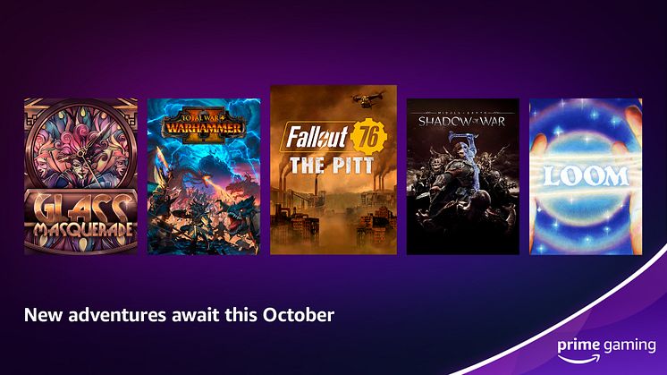 - The October Games with Prime lineup features seven titles, including Fallout 76, Total War: Warhammer II, Middle-Earth: Shadow of War, Glass Masquerade: Origins, LOOM, Hero’s Hour and Horace.