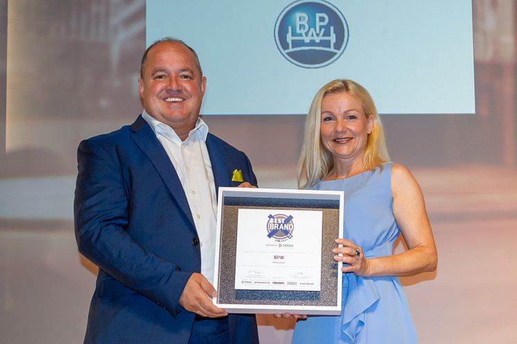 Ralf Merkelbach and Katrin Köster (BPW) received the ETM Award for the best trailer axles for the 13th time in a row in Stuttgart.