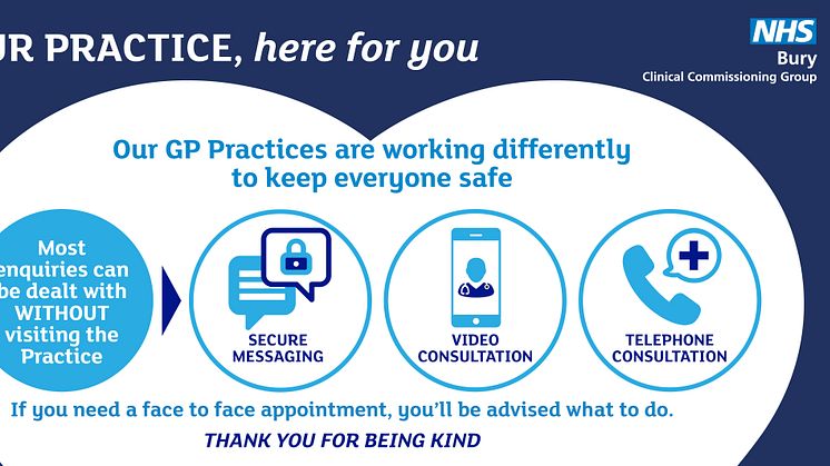Practices are working hard to provide care safely while reducing the transmission of coronavirus and, thanks to new technology, most patient enquiries can now be dealt with without having to come in to the practice.