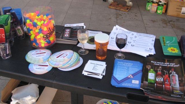 They used replica drinks, drink measures and ‘beer goggles’ to illustrate how alcohol can affect drivers, and handed out free samples of hot, non-alcoholic cocktails to promote safer alternatives.