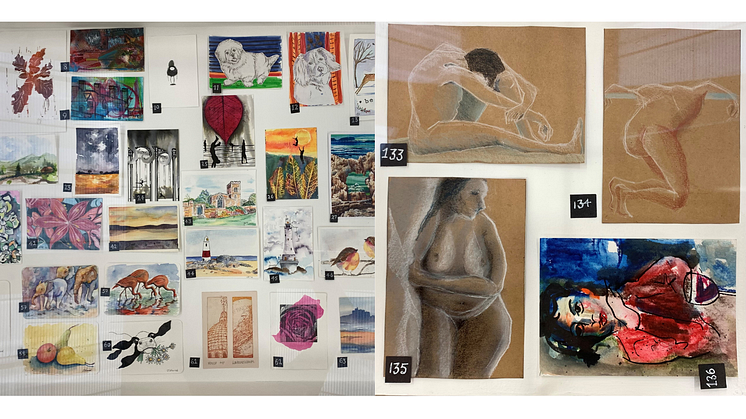 Made by local artists and drawing enthusiasts, some 136 postcard-sized artworks in a variety of media - ink, pencil, watercolour, felt tip, collage, crayon, biro and paint – were put on display.