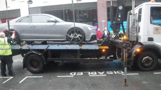 The Audi was taken away from The Rock yesterday after the owner did not pay 84 Penalty Charge Notices (PCNs) for persistent parking on yellow lines and/or prohibited areas.