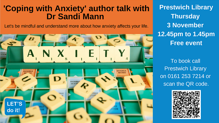 Author and psychologist Dr Sandi Mann will be at Prestwich Library to help us to understand and cope with panic attacks or severe anxiety.