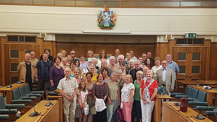 The visitors were welcomed with refreshments in the Mayor’s Parlour. While at the Town hall there was the opportunity to view the civic ceremonial dress and insignia while also learn about the role and duties of the Mayor and how this differs from the town mayors in France. The group also visited the Council Chamber to hear about how the meetings are run.