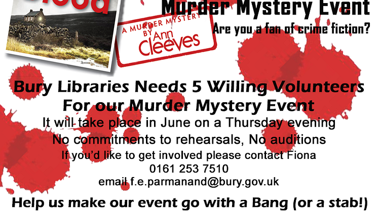 Five volunteers are needed to become part of a “Shetland Murder Mystery” held at a local library in June.