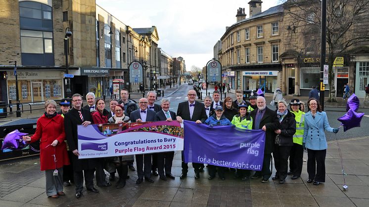 Councillor Mike Connolly, leader of the council, said: “We are delighted to receive this prestigious award in recognition of the ongoing excellence of Bury town centre. Purple Flag status reflects our recognition of the importance of the night time economy and builds on our overall approach to ensure that the town centre continues to support the wider economy while also supporting our work on the Greater Manchester Alcohol Strategy.
