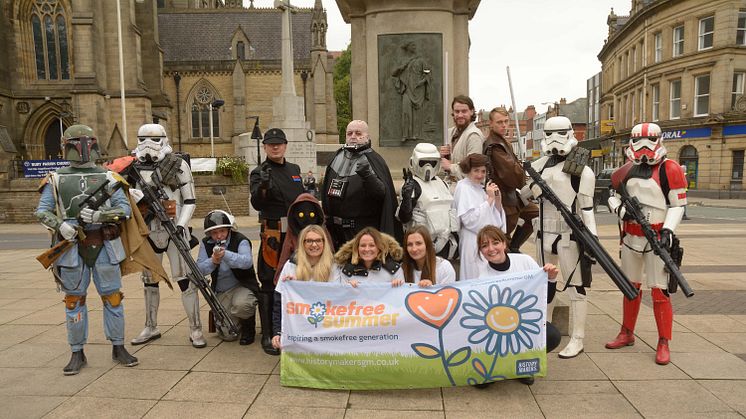 They were in town during the Glaston-Bury rock festival to promote a Smokefree Summer. It follows the recent ‘History Makers’ survey of people’s attitudes to smoking in public places, which was launched by Mayor of Greater Manchester Andy Burnham.