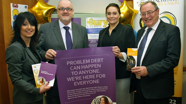 Picture attached: Launching the partnership between Bury Council and StepChange Debt Charity are (from left) Michelle Delaney, the council’s corporate debt manager; Cllr Mike Connolly, leader of the council; Caroline Hamilton, relationship manager at StepChange; and Cllr John Smith, cabinet member for finance and corporate affairs.