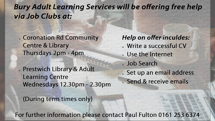 Bury Adult Learning Service is holding Job Clubs at local libraries for those looking to boost their employment chances.